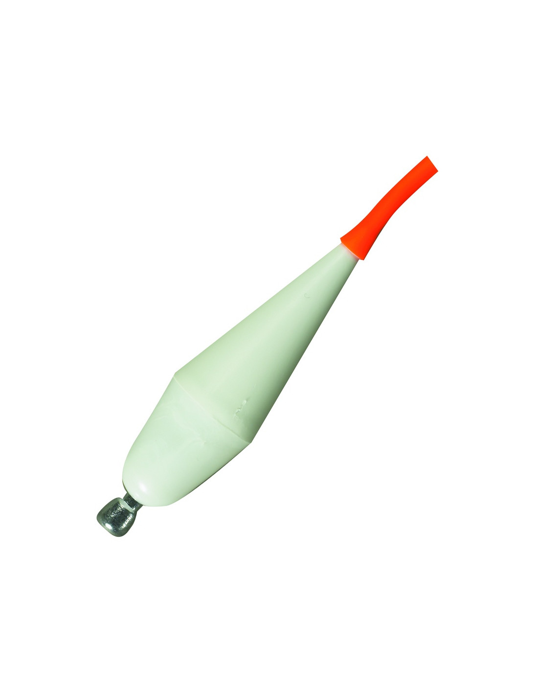 En fluoriserende hette beskytter toppøyet slik at fortommen ikke henger seg opp under kast. Blytuppen kan dras ut og fortommen kan knytes rundt denne.