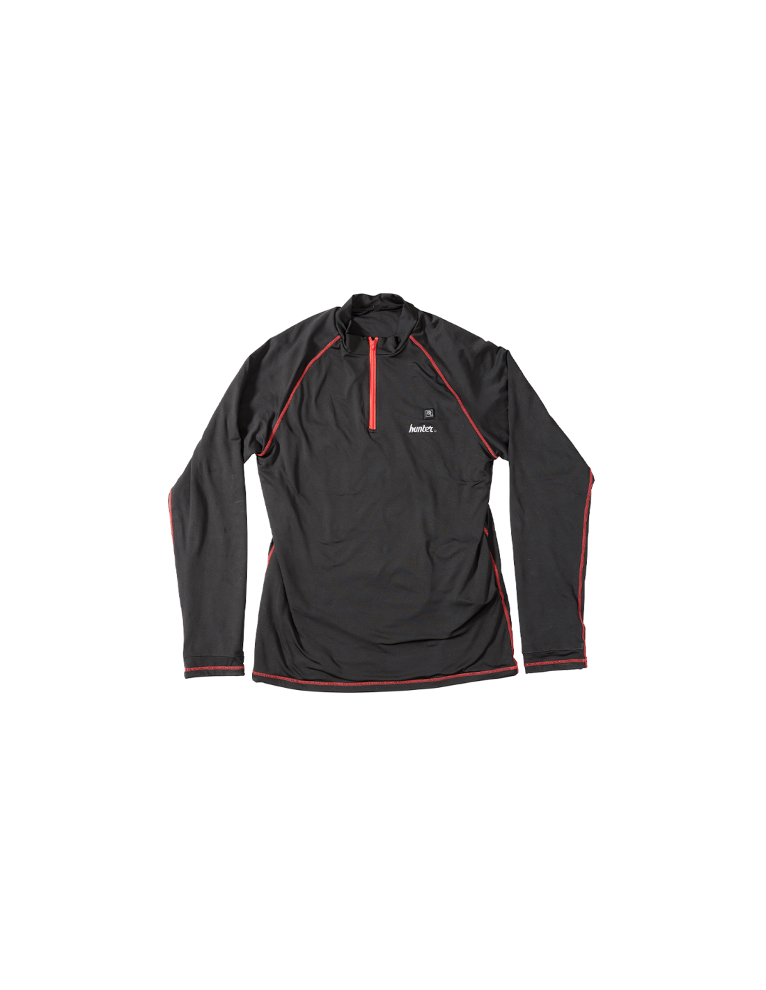 Hunters termoskjorte er utstyrt med tre varmepaneler som reguleres ved hjelp av en trykknapp på brystet og du kan velge mellom tre forskjellige temperaturer.