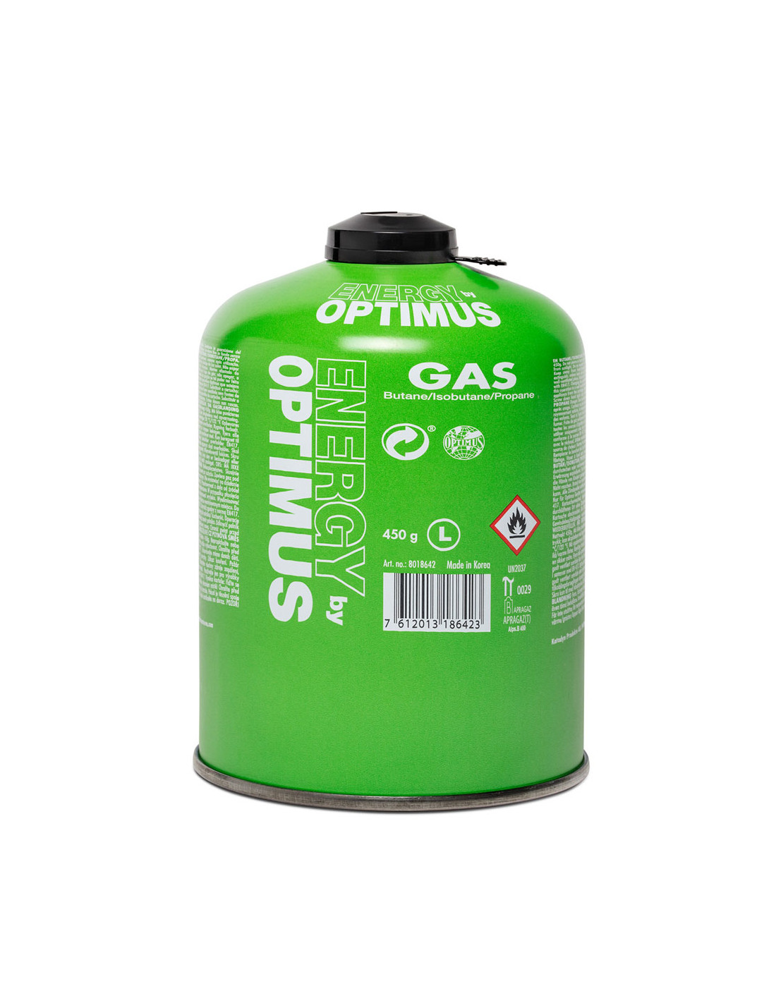 Gassboksene fra Optimus inneholder en premium blanding av butan (50 %), isobutan (25 %) og propan (25 %) som sørger for at brenneren din fungerer optimalt, også under tøffe værforhold. Solid gassboks produsert i stål.
