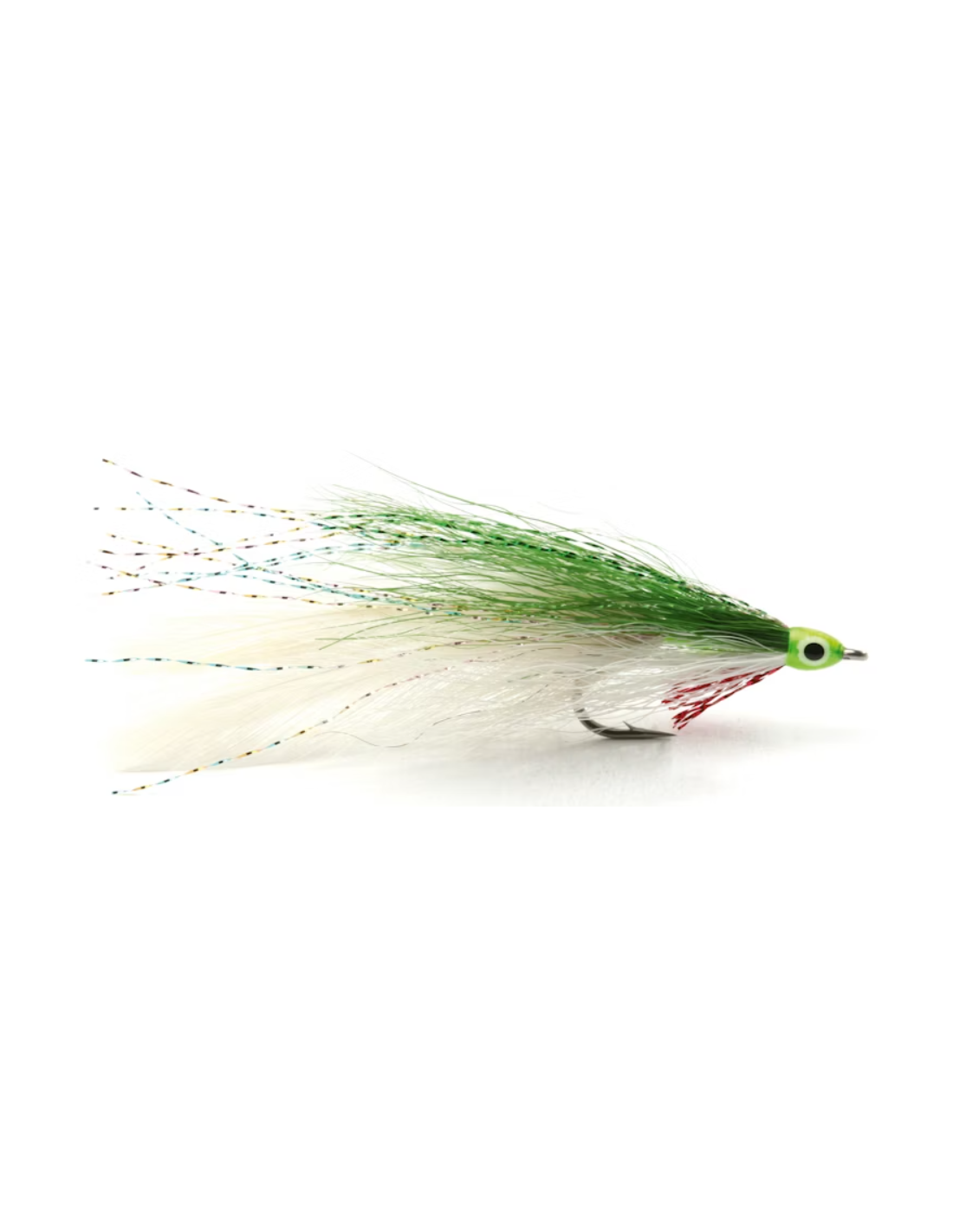 Lefty's Deceiver i hvit og grønn er en god farge når sjøørreten jager brisling.