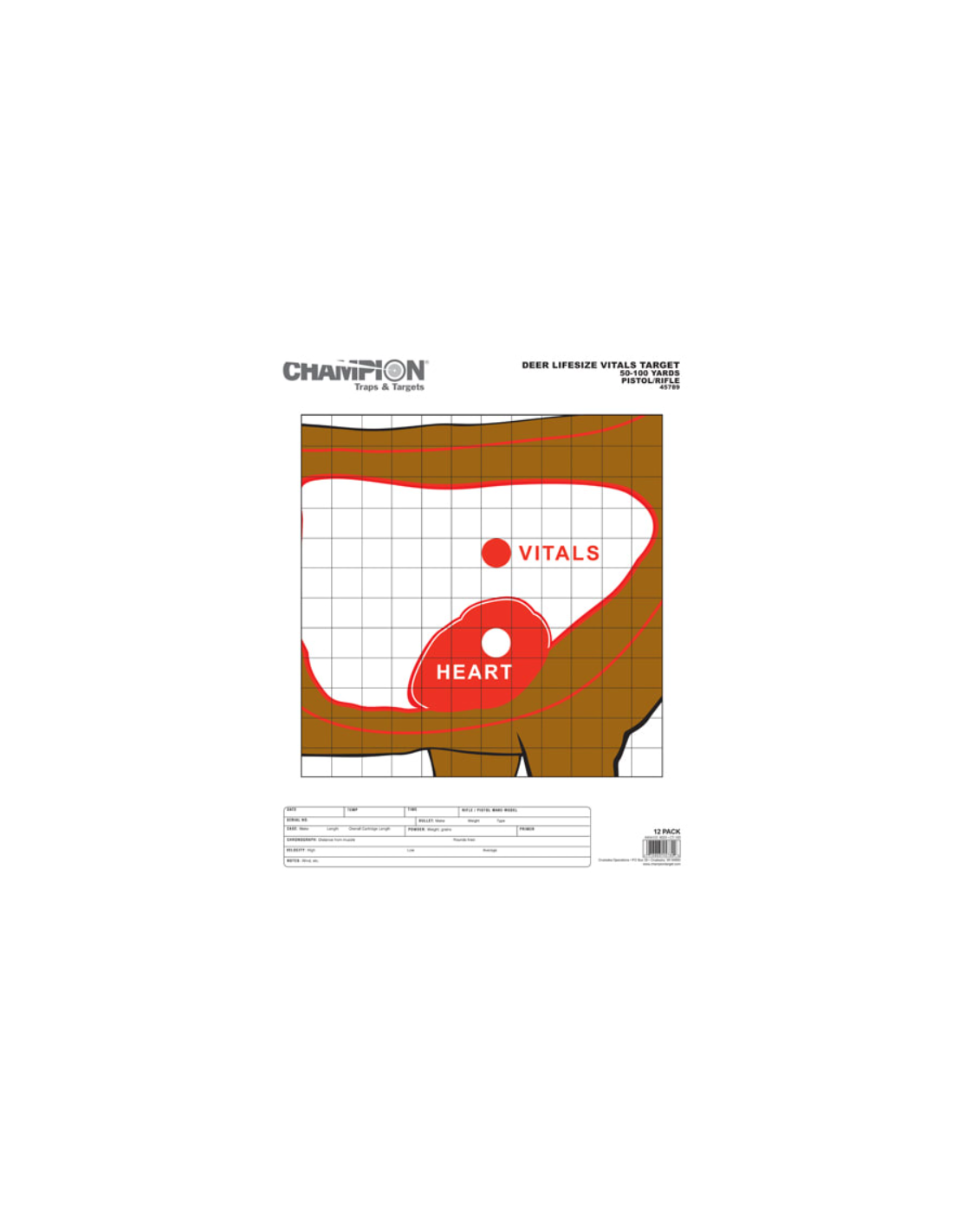 Skyteskive med vital sone for hjort. Viser hjerte og lungeregion.