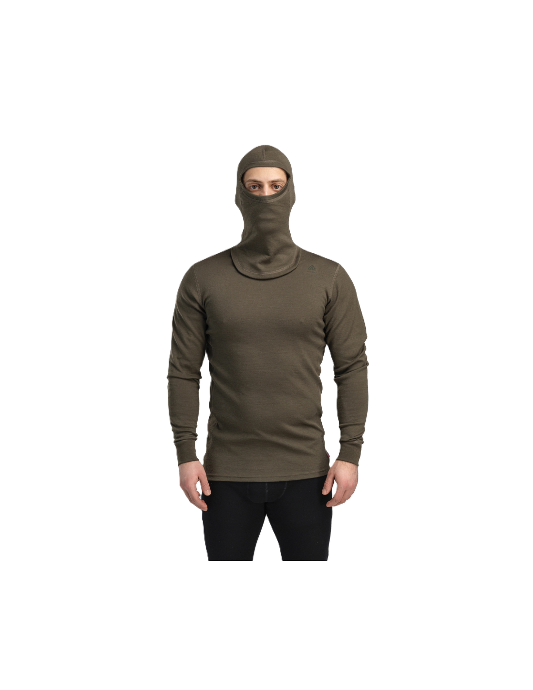 WarmWool Hoodsweater V2 er en ulltrøye med en treveis hettefunksjon hvor man kan velge mellom rund hals, polo eller dekke til hele hodet med den integrerte balaklavaen.