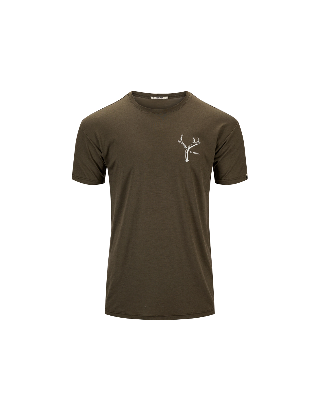 Aclima LightWool 140 Classic Tee Antler Mens er en kortermet ulltrøye med print, rund hals og romslig passform.